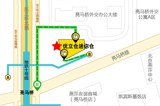 您可通过高德地图、百度地图等,搜索“优立仓迷你自助仓(燕莎店)”店铺位置。